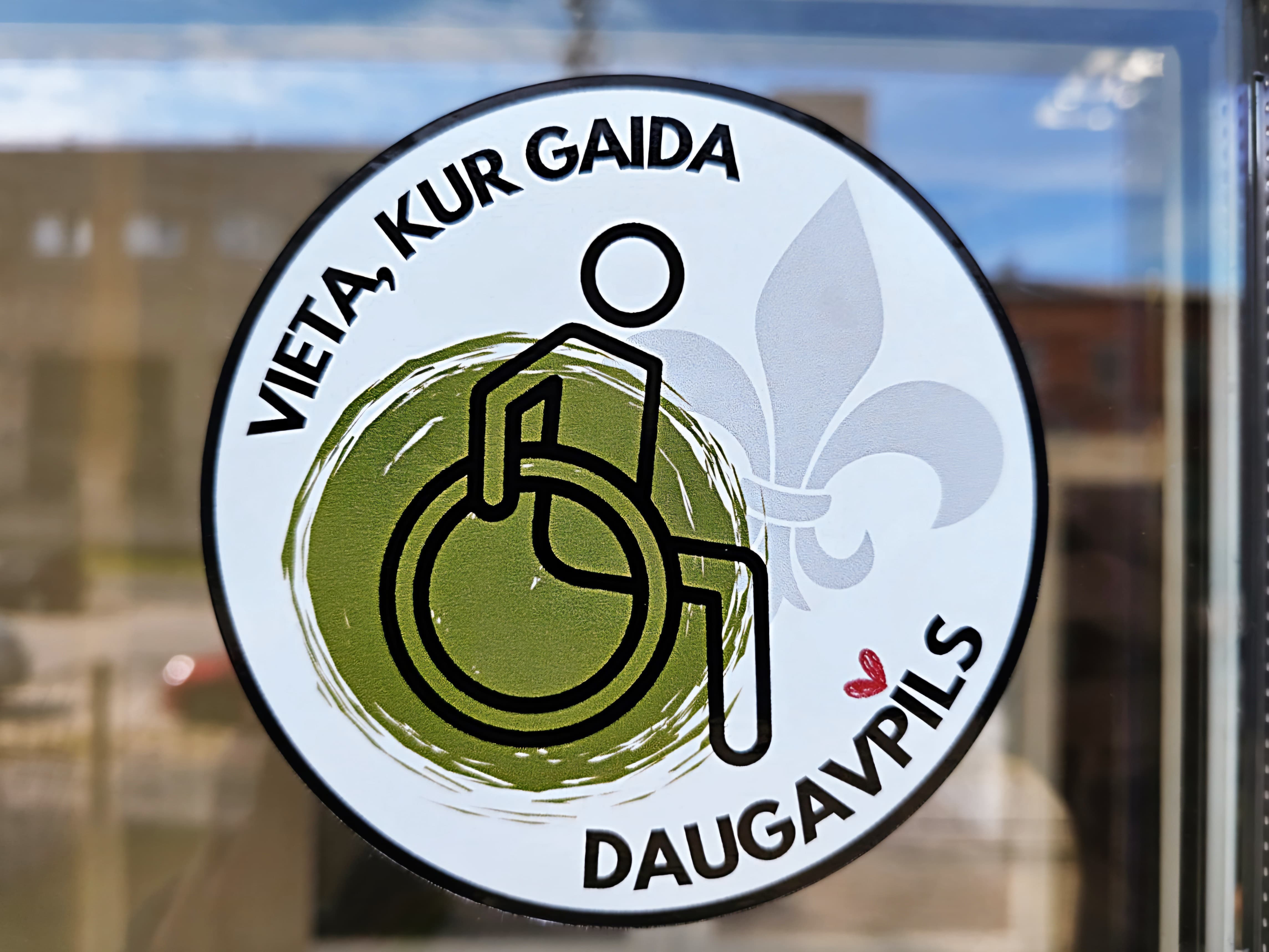 Daugavpils valstspilsētas pašvaldības Sabiedrisko attiecību un tūrisma departaments kopā ar deputātu Dmitriju Valaini un iniciatīvo grupu izstrādāja īpašas uzlīmes “Vieta, kur gaida”, kuras var saņemt uzņēmumi un iestādes, kur nodrošināta vides pieejamība.
