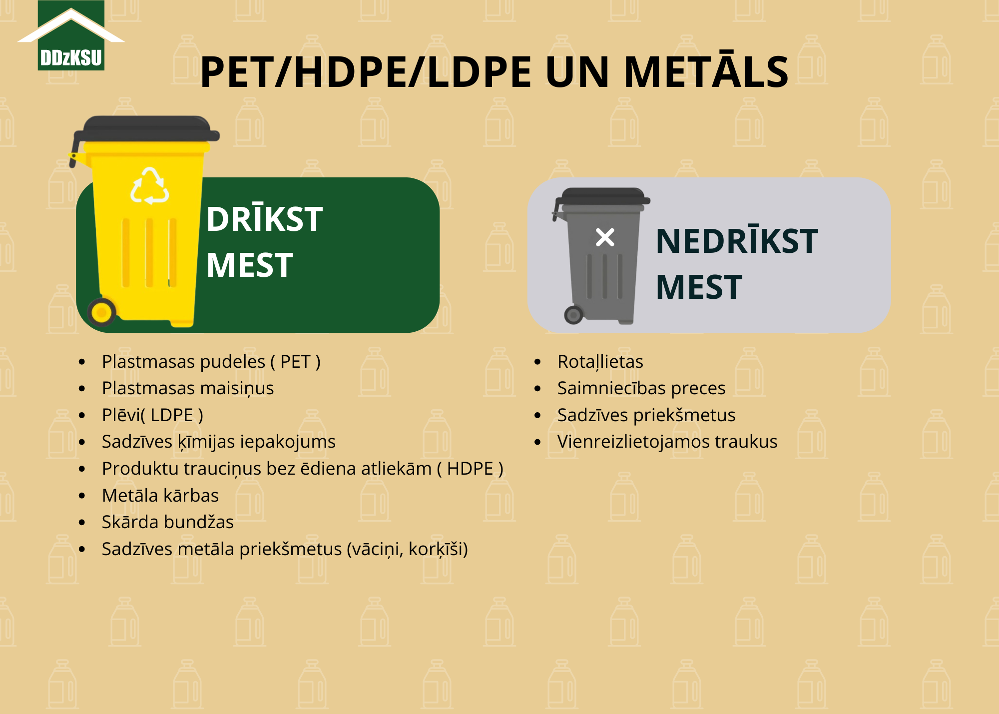Lūdzam Daugavpils iedzīvotājus aktīvi izmantot pilsētā piedāvātās šķirošanas iespējas un rūpīgi sekot norādēm uz konteineriem, lai nodrošinātu atkritumu pareizu pārstrādi un kopīgu ieguldījumu tīrākas un videi draudzīgākas pilsētas nākotnē.