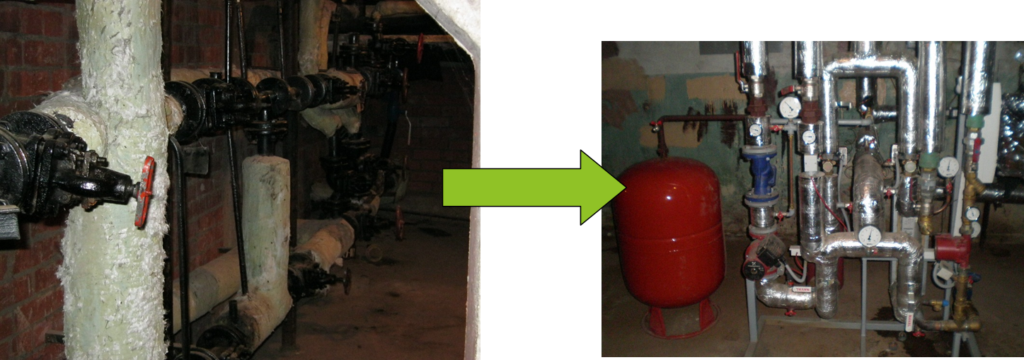 Siltummezglu renovācija, ieskaitot automatizētu piegādes temperatūras kontroli atkarībā no āra gaisa temperatūras