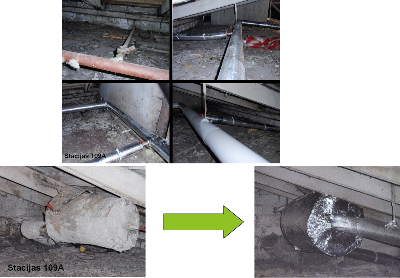Dzīvojamā mājā Vienības ielā 28 cauruļvadu termofiksācija pirms un pēc renovācijas darbiem