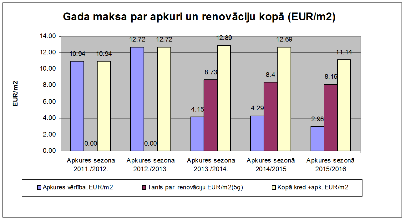 Renovācijas darbu tarifs – 0.73 EUR/m2